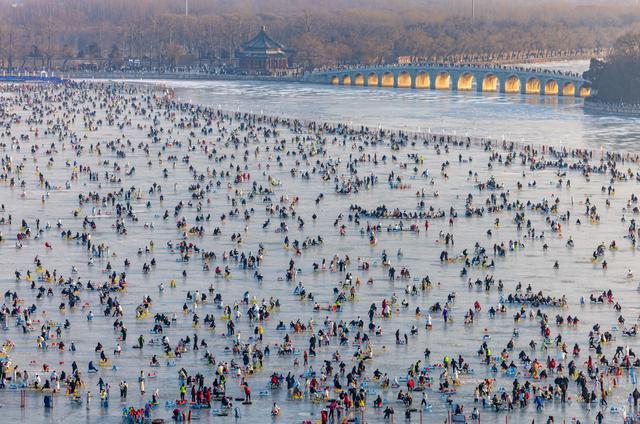 在颐和园的冰面上,与陌生人自发组队的冰车接龙,成了当下超火的冬日社交新方式。